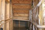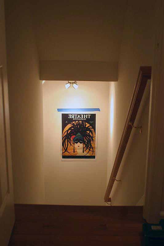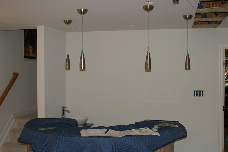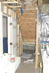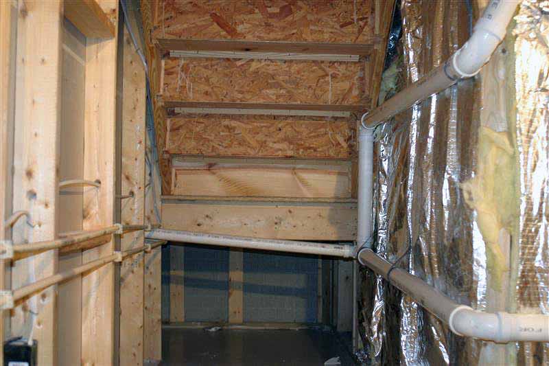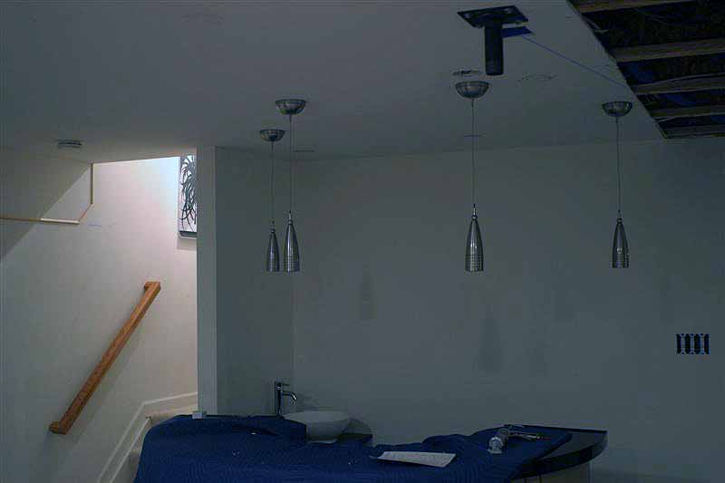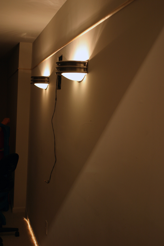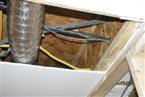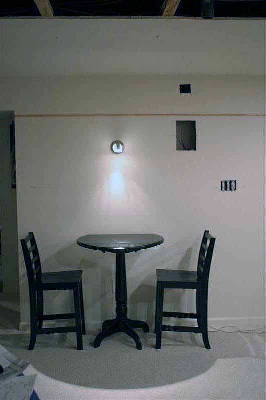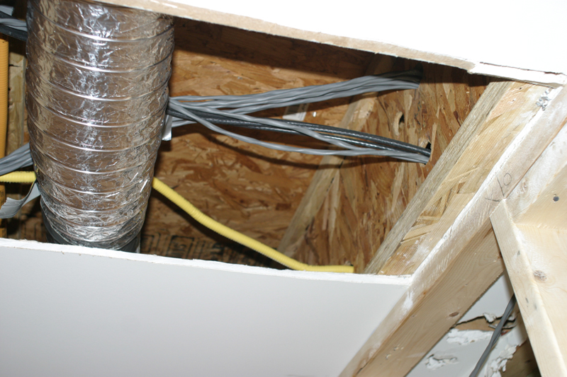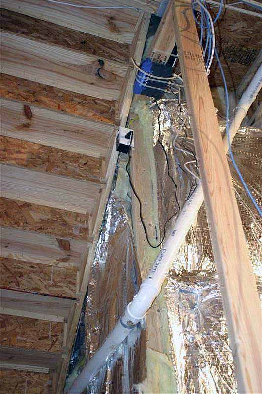 drywall left over from the bathroom! Subwoofer cable at bottom. |