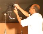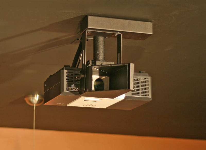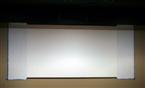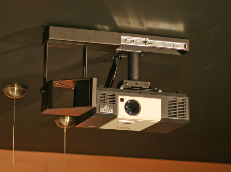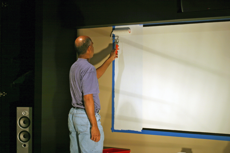 Scope upgrade is 100% done. October 08 After living with the VC lens for about a year and liking the increase in picture quality I wanted the full monty; a 117" scope screen, instead of the pseudo-54" screen the Panamorph lens gave me. I had done some research on lenses. It's the same everywhere; you get what you pay for. Unfortunately, I was on a budget. I almost pulled the trigger on a reconditioned UH-380 for $1,200. However, I found out about the HTB lens and sold my U85. The result was a cost to me of about $300. HTB also came out with a manual slide. The first step was to widen the screen. Since it was paint I just made it wider. I wanted to sand the old black border off, but my dad suggested Kilz, as sanding might gouge the surface. (It was also easier.) I didn't have enough topcoat to repaint the entire screen, so I primed the "ears" with Kilz after some minor patching. I then primed the ears with the Screen Goo base coat. Twice. After a final light sanding I painted the ears with two coats of Screen Goo CRT White topcoat. At this point it was apparent that the ears were a different color. It seemed the paint had yellowed a little since I first painted the screen almost three years ago. (This would imply that the paint is of low quality, but that is not the case. The manufacturer states that the paint takes quite a while to reach its final stage.) I then painted the entire area with the last of the topcoat. Once it dried I repainted the border. The result: All I can say is "wow!" I don't notice the ears being a different color while watching movies (even in sky/sea shots.) It is just the experience I wanted. As for the lens, I couldn't get rid of the pincushion, and the CA is noticeable, mostly on the right side. I suppose it makes the image a little softer, too. However, these shortcomings are most noticeable while watching test patterns, not movies. Eventually I'll get the ISCO III lens, but that's six grand! For now, I'm just enjoying scope movies. One last note, the manual slide is of very high quality, as is the lens. Its optics aren't perfect, but that's all you can do with at two-prism lens. HTB provides a good value.